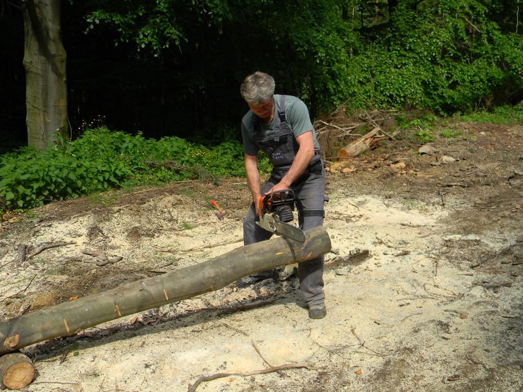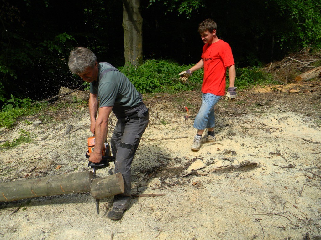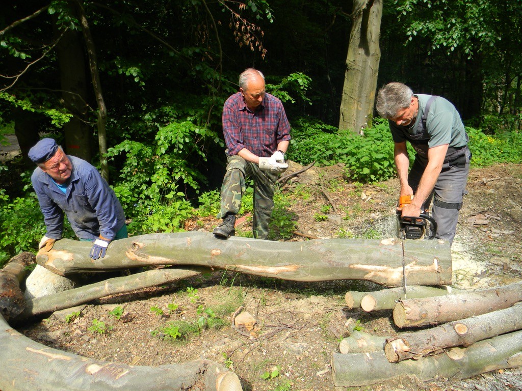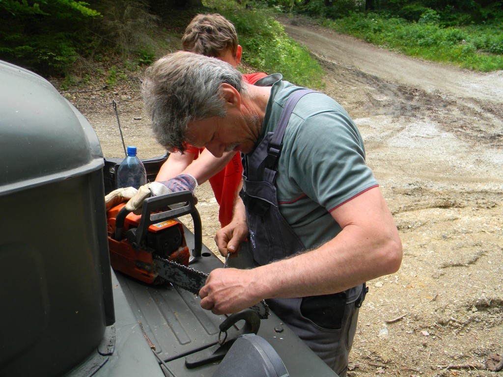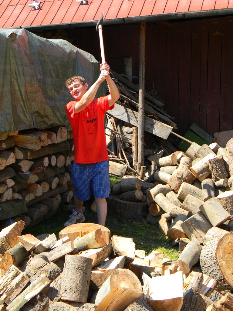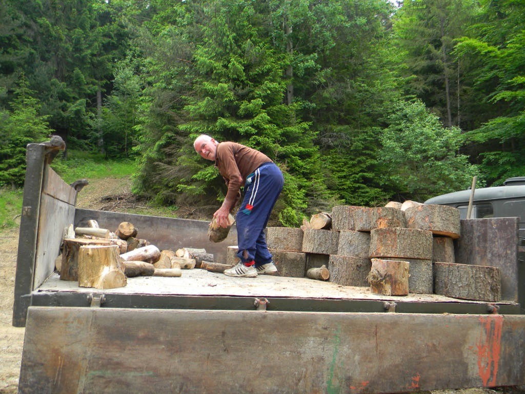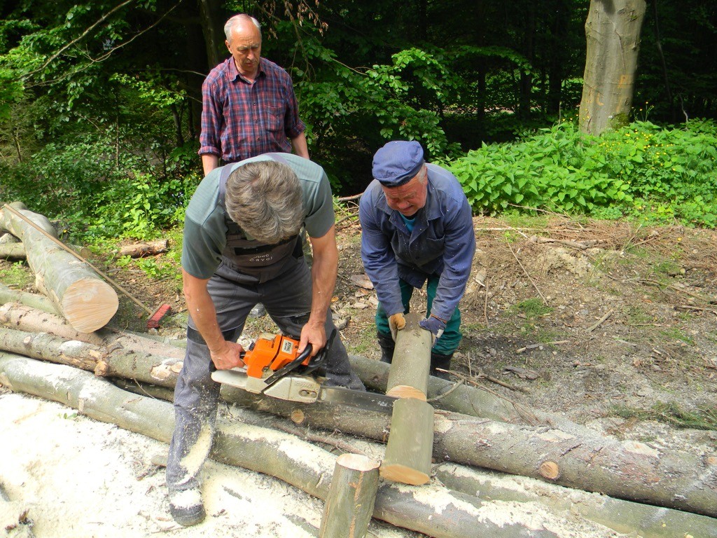 Zvezené drevo bolo treba porúbať. Tejto ťažkej úlohy sa ujali ochotní bratia, Laco a Tonko Noskovi. Pán Boh im zaplať.