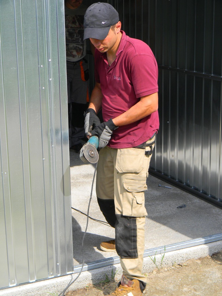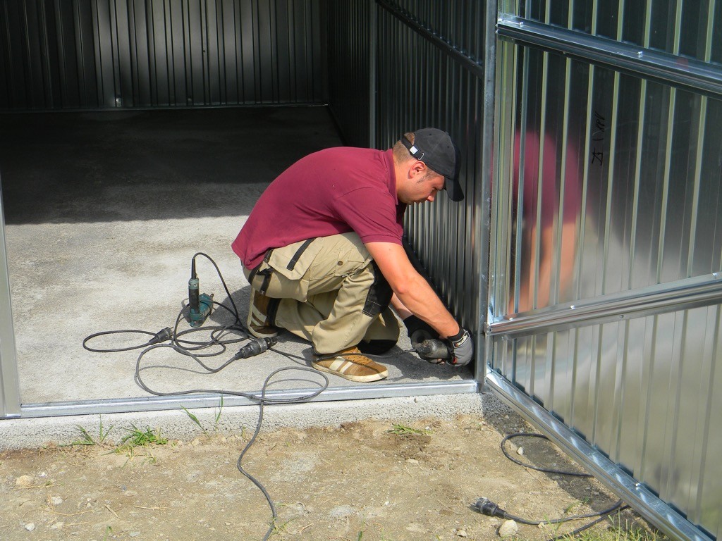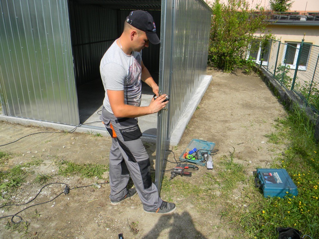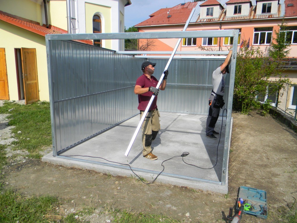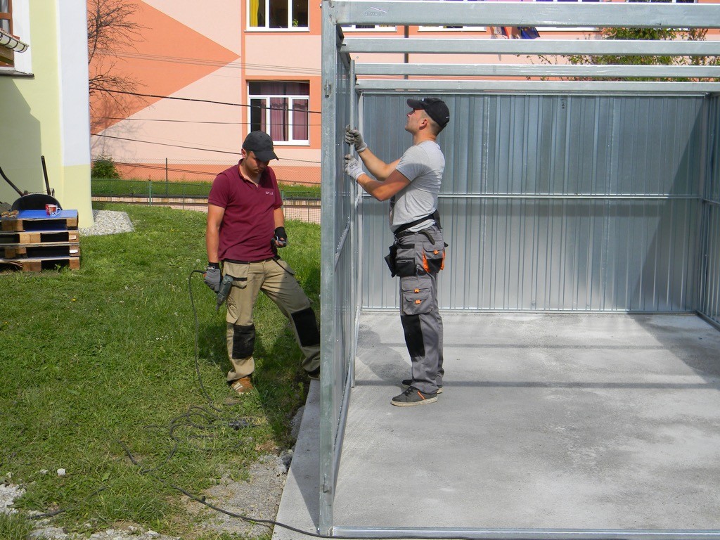 1.6.2015 nám namontovali na náš vopred pripravený betónový základ plechovú búdu – sklad peliet.