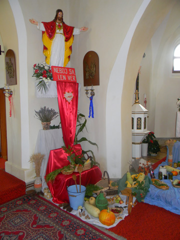 Posledný septembrový víkend sa v našej farnosti niesol v duchu veľkej vďaky. Ďakovali sme Pánu Bohu za novú úrodu. V sobotu sme mali svätú omšu s formulárom Na poďakovanie za úrodu a v nedeľu pri svätej omši sme novú úrodu požehnali. O krásnu výzdobu kostola sa postarali bratia a sestry ktorí priniesli plody zo svojich záhrad, sadov, polí, lúk a lesov a panie aranžérky a ich pomocníci ktorí spolu všetko veľmi krásne naaranžovali. Na prvom mieste chcem poďakovať Pánu Bohu za všetky milosti ktorými našu farnosť požehnáva a ďakujem všetkým, ktorý priložili ruku k dielu pri tohtoročnom Poďakovaní za úrodu.