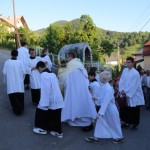 K mesiacu jún bezpochyby patrí slávnosť Najsvätejšieho Kristovho Tela a Krvi, Božie Telo, i s tradičnou Eucharistickou procesiou. Vo štvrtok 4.6.2015 sme za hojnej účastí detí, dospelých i seniorov niesli Najsvätejšiu sviatosť v procesii a požehnávali farnosť na každej svetovej strane. Deti na znak úcty a lásky k Ježišovi Kristovi sypali lupienky kvetov a všetci sme spievali piesne na oslavu Boha.