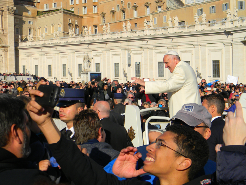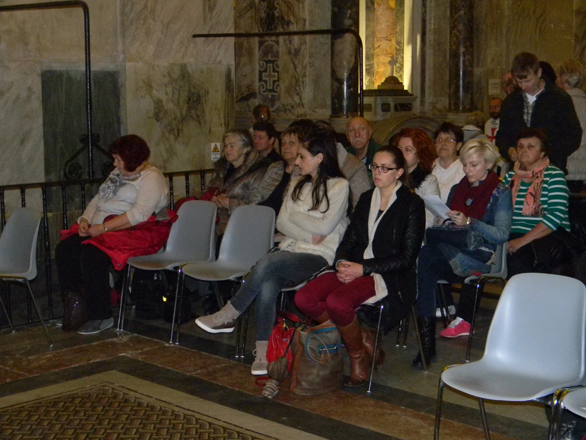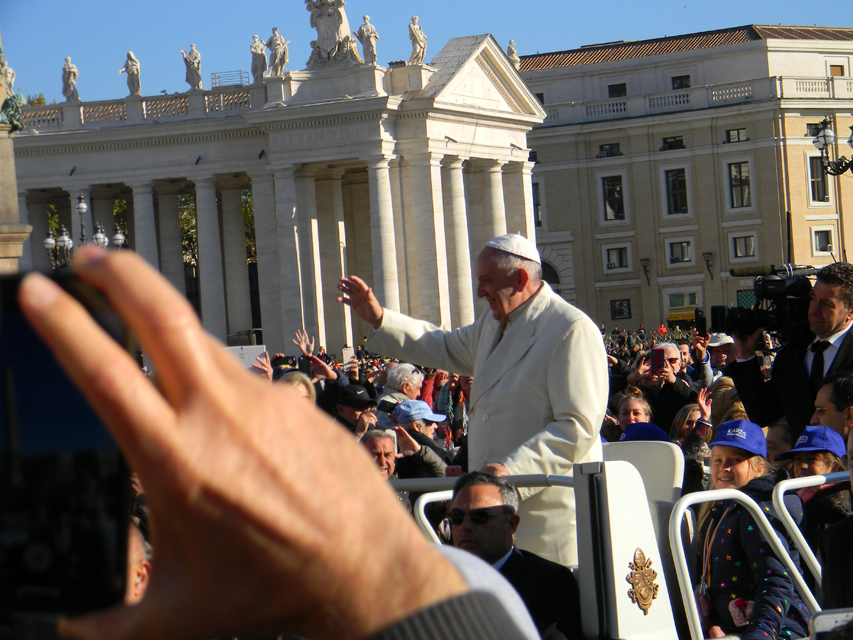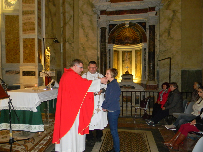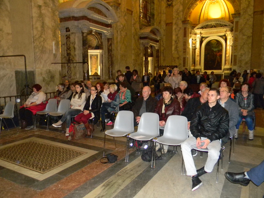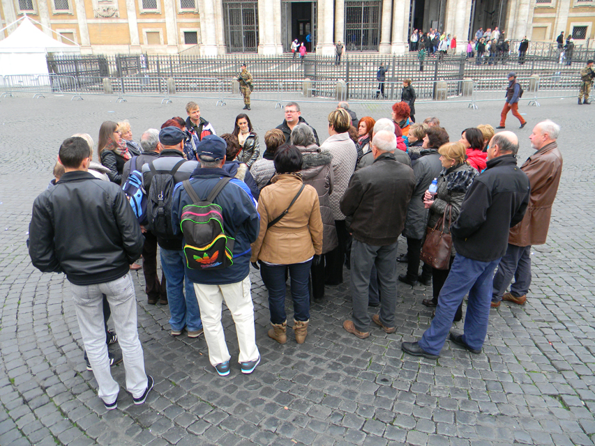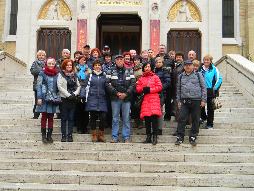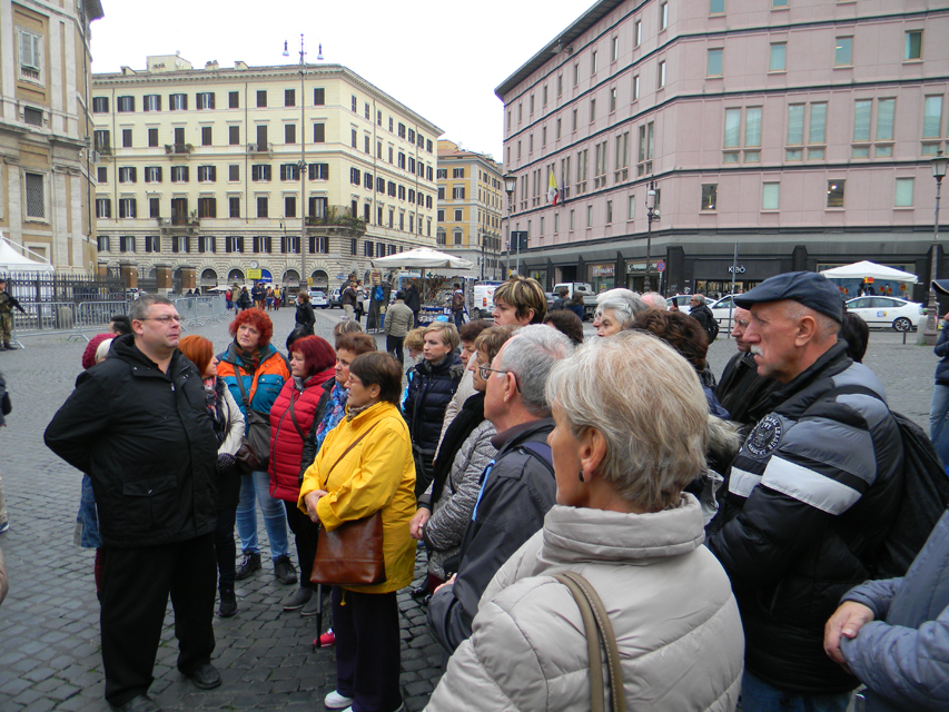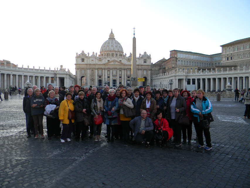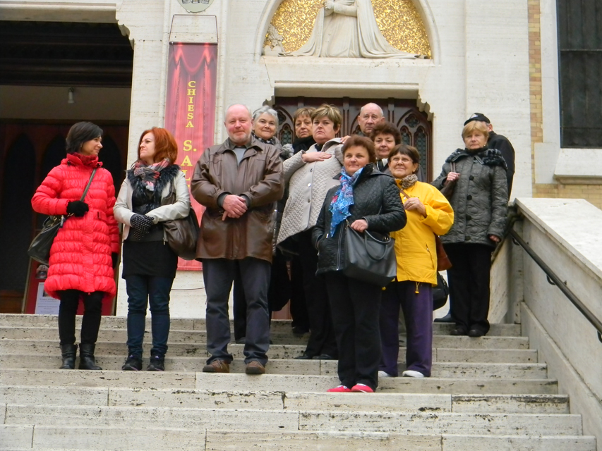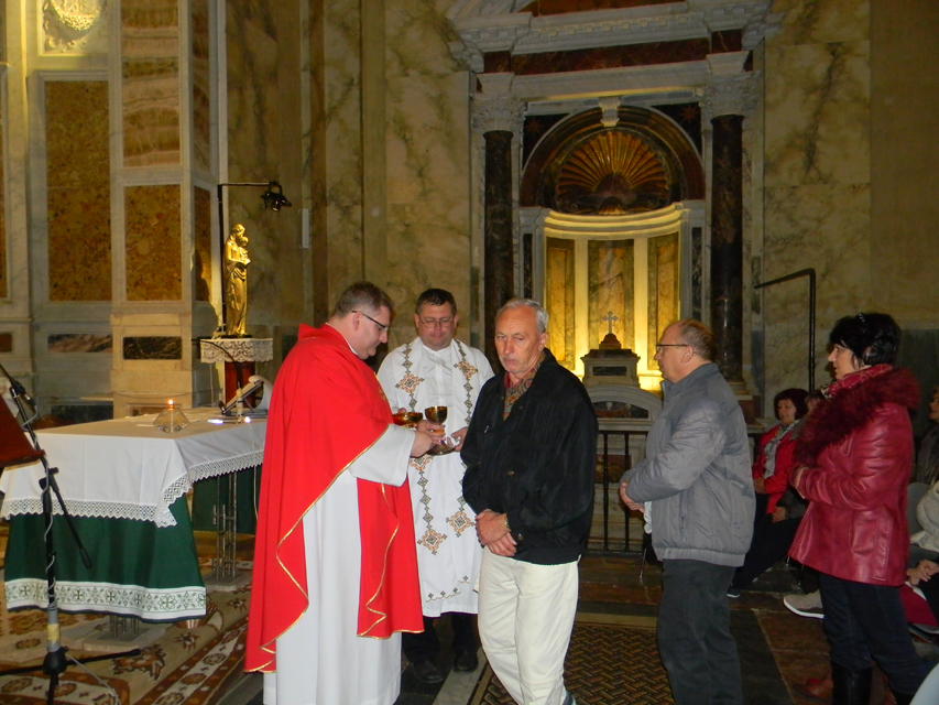 Naša púť vo Večnom meste začala v stredu, generálnou audienciou pápeža Františka na Námestí svätého Petra. Bola to posledná generálna audiencia v končiacom sa jubilejnom roku. Po požehnaní sme navštívili Vatikánske múzeá a Sixtínsku kaplnku. Do chrámu Svätého Petra sme vstúpili v tom čase už iba jedinou otvorenou Svätou bránou milosrdenstva na celom svete. Podvečer sme navštívili Slovenský ústav sv. Cyrila a Metoda v Ríme. Veľmi srdečne a priateľský nás prijal jeho rektor, vdp. Pavol Zvara. V kaplnke kolégia sme mali prvú svätú omšu v Ríme. Slávnostným kazateľom bol vdp. Viliam Zemančík a koncelebroval vdp. Andrej Filín.