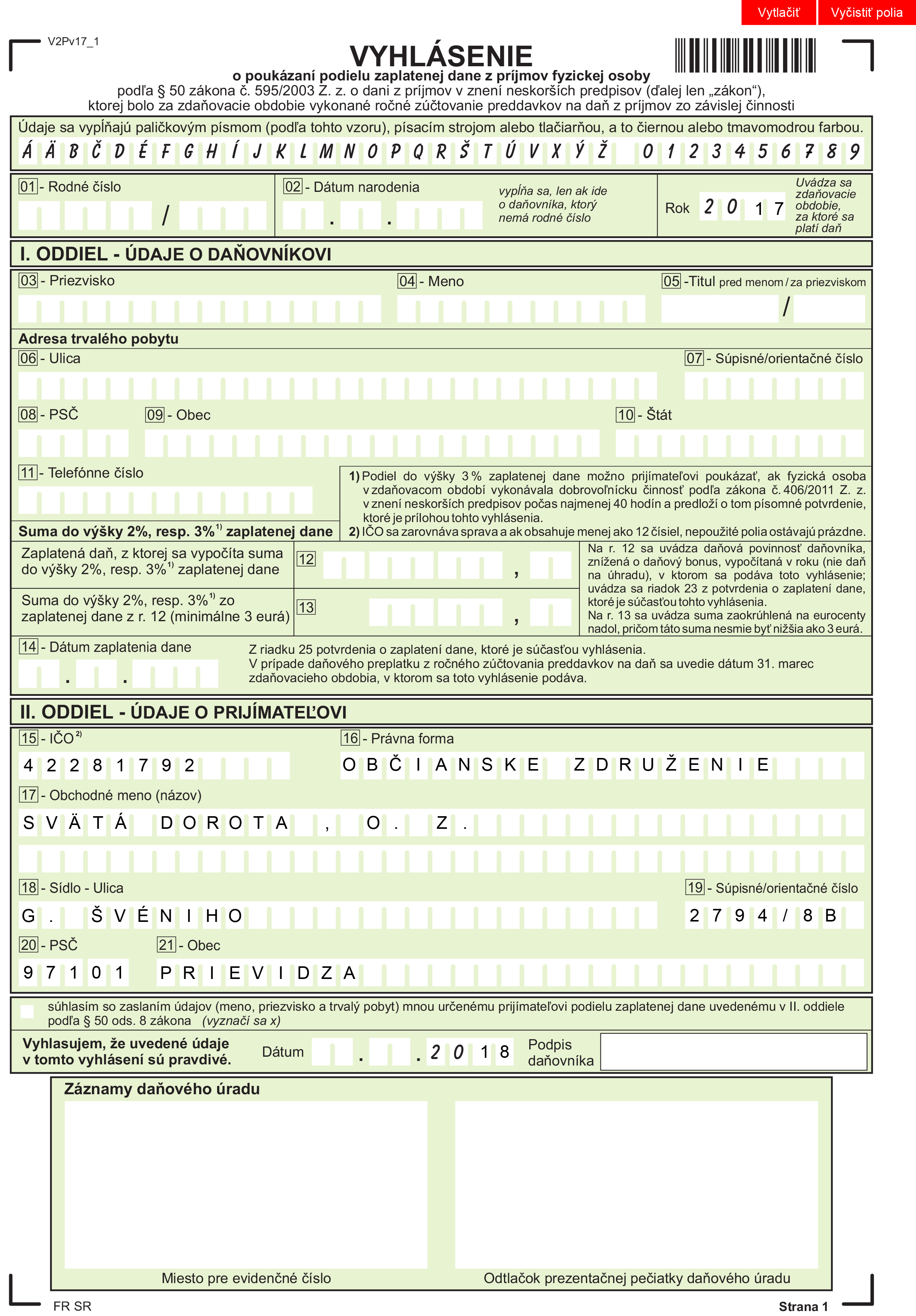 Verím, že i v tomto roku nám preukážete svoju priazeň a venujete nám 2 % z Vašich daní, aby sme mohli v Božom diele pokračovať.
