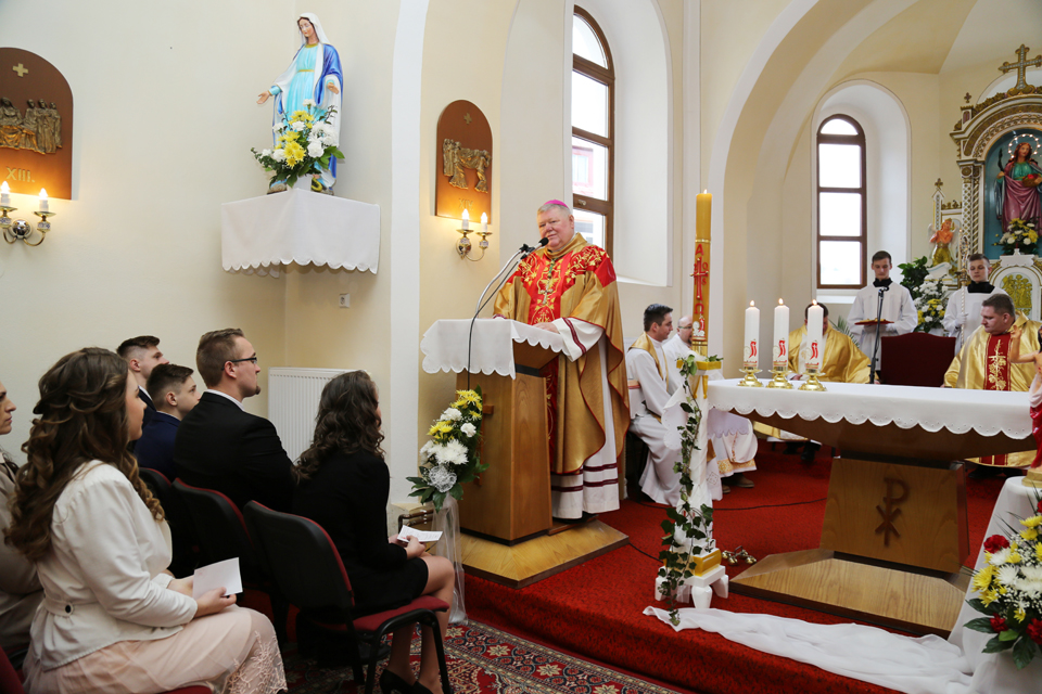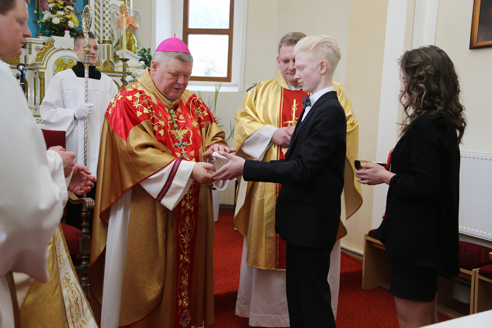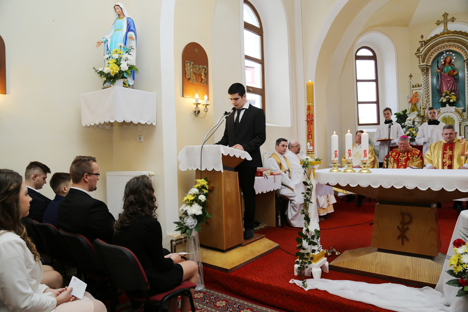 Na Druhú veľkonočnú nedeľu, 8.4.2018, sa konala v našej farnosti veľká slávnosť. Nitriansky biskup Mons. Viliam Judák udelil našim sedemnástim birmovancom Sviatosť birmovania.